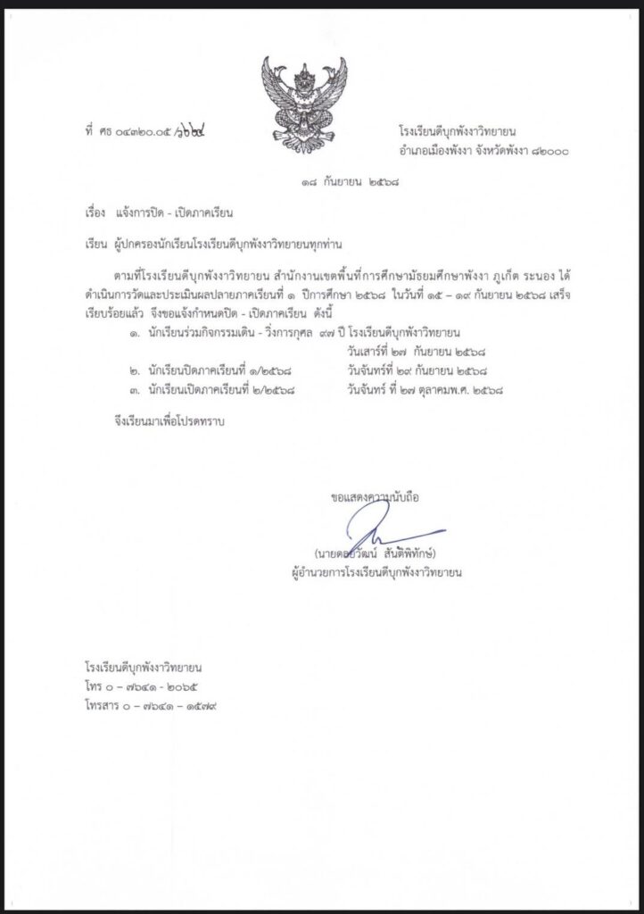 ประกาศของโรงเรียนดีบุกพังงาวิทยายน